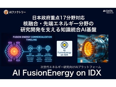日本政府が掲げる重点17分野の一つである「次世代エネルギー」領域、特に核融合エネルギーを中心とした先端エネルギー研究に向けて、生成AIを活用した統合研究基盤「AI FusionEnergy on IDX」を提供開始いたします。