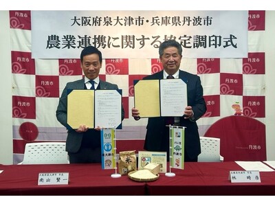 泉大津市(市長:南出賢一)と丹波市(市長:林時彦)は、令和7年12月16日に「農業を通じた連携による持続可能なまちづくり」など5項目にわたる農業連携協定を締結しました。