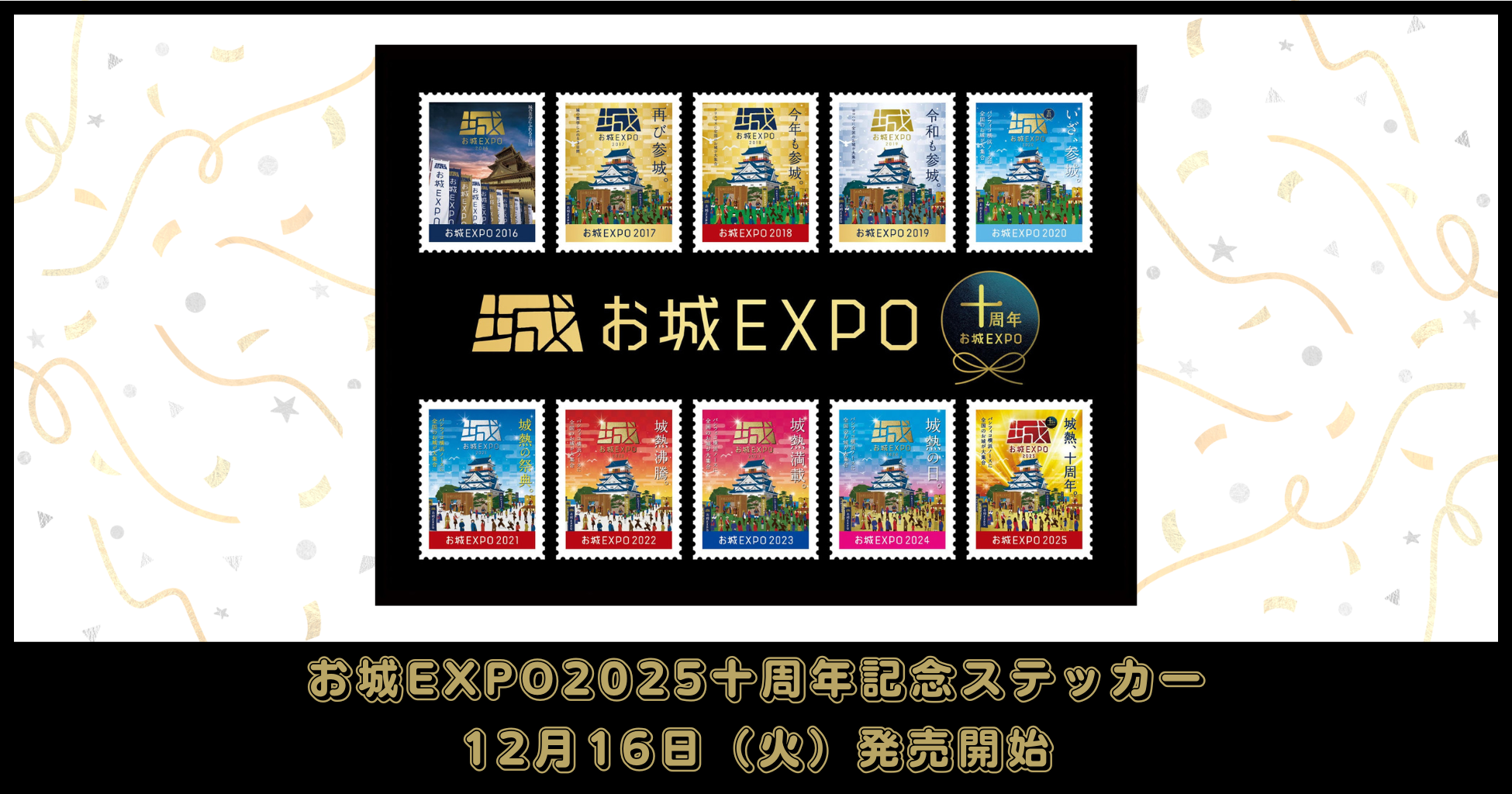 今回は、お城EXPOの開催10周年を記念して、2016年から2025年までの過去10年間のポスターを記念切手風のシールとして販売いたします。