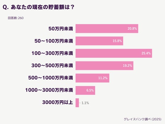さらに、現在の貯金額についても聞いてみました。結果は以下の通り。