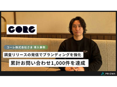 株式会社PRIZMA(本社:東京都渋谷区、代表取締役:杉本 昂輝)は、AIの戦略設計から本番実装・運用定着、人材育成、事業化までを一貫して支援するコーレ株式会社(本社:東京都新宿区、代表取締役:奥脇 真人)が、株式会社PRIZMAの提供する「調査リリース」サービスを活用し、ブランディング強化と営業資料などへの二次利用を実現したことをお知らせします。