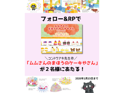 魔法使いのムムさんと、小さな黒猫のミミの、可愛らしくて心があたたかくなる物語!人気作家・コンドウアキ先生の絵本『ムムさんのまほうのケーキやさん』のプレゼントキャンペーンを実施いたします!