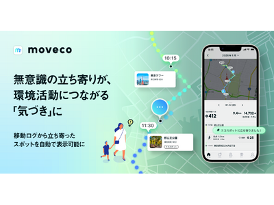 『moveco by NAVITIME』は、環境負荷の低い移動方法の選択や、エコスポットへの訪問、エコに関する記事閲覧などの行動を通じて、環境貢献への意識を高めるエコ活アプリです。移動に伴うCO2排出量を可視化する移動ログ機能や、エコ活に応じたマイル付与機能により、エコな移動をサポートするサービスです。