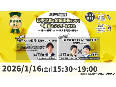 https://www.relocation.jp/)は、社員の生活や挑戦を支える“住まい”を企業成長の基盤として着目し、社員の意欲と定着を高めるヒントを探るセミナー&交流会を2026年1月16日(金)に開催いたします。