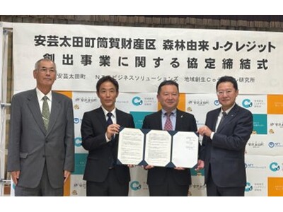 NTTビジネスソリューションズ株式会社 広島ビジネス営業部(取締役 広島ビジネス営業部長:今崎 宏)、株式会社地域創生Coデザイン研究所(取締役 コンサルティング事業部長:東山 真也)は、安芸太田町筒賀財産区(管理者(安芸太田町長):橋本 博明)と地域の森林資源を活用したJ-クレジット創出事業による地域資源の活用と脱炭素社会の実現に向け「安芸太田町筒賀財産区森林由来J-クレジット創出事業協定(以下、「本協定」)」を締結しました。