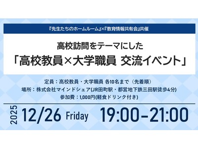 高校教員と大学職員が一堂に会し、「高校訪問」をテーマに意見交換・交流を行うイベントを開催いたします。