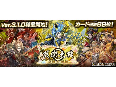 本日稼働開始した「Ver.3.1.0」では、全89枚のカードを追加。さらに、戦闘バランスの調整、群雄伝の新シナリオやカスタマイズアイテムの追加など様々な面で進化し、より奥深く楽しめるバージョンとなっております。
