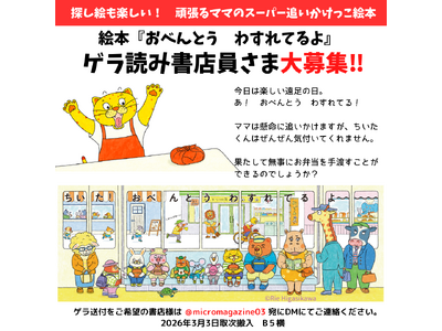 マイクロマガジン社(東京都中央区)は、2026年3月刊行予定の新作絵本『おべんとう わすれてるよ』のゲラ(校了前の原稿)を読んでくださる書店員さまを募集いたします。