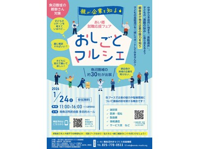 新潟県南魚沼市は、一般社団法人南魚沼市まちづくり推進機構との共催により、「地元企業」と「地域の若者・保護者」をつなぐイベントとして、あい郷就職応援フェア「おしごとマルシェ」を開催します。お子さんの進路や将来を考える保護者、求職活動に取り組む若者を主な対象とした企業説明会です。