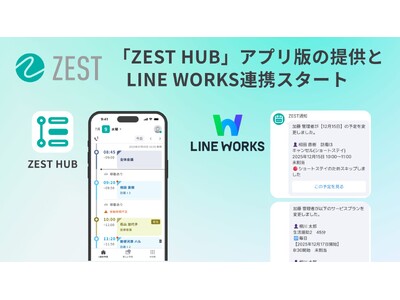株式会社ゼスト(本社:東京都新宿区、代表取締役社長 CEO:一色淳之介)は、在宅医療・介護向けの収益改善プラットフォーム「ZEST」において、この度、初のスマートフォン・タブレットアプリ「ZEST HUB」の提供と、LINE WORKS株式会社が提供するビジネスチャット「LINE WORKS」との連携を開始したことをお知らせします。