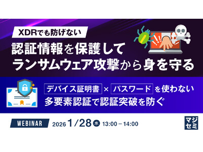マジセミ株式会社は「XDRでも防げない、認証情報を保護してランサムウェア攻撃から身を守る」というテーマのウェビナーを開催します。