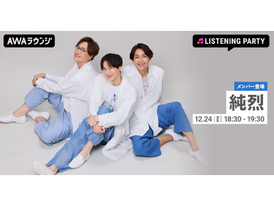AWA株式会社(本社:東京都港区、代表取締役CEO:冨樫晃己)が運営する、サブスクリプション型(定額制)音楽ストリーミングサービス「AWA(アワ)」は、2025年12月24日(水) 18:30~19:30の1時間にわたり、無料で誰でも参加できるオンライン空間「ラウンジ」で、純烈のメンバーが音声とチャットで登場するリスニングパーティーを開催いたします。
