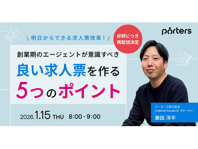 人材ビジネス向けマッチングシステムを提供するポーターズ株式会社(東京証券取引所グロース.証券コード5126、東京都港区、代表 西森 康二)は、「