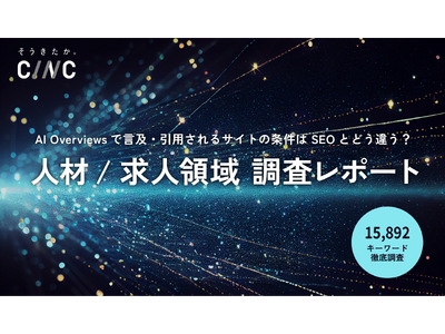 株式会社CINC(本社:東京都港区、代表取締役社長:石松友典、以下CINC)は、人材/求人領域におけるGoogle検索「AI Overviews(以下、AIOs)」に関する調査を実施いたしました。本調査では、当該領域の主要キーワード15,892件を分析し、5つの仮説に基づいて検証を行っています。AIOsの回答内で言及されやすいブランド(企業名や商品・サービス名)や、引用されやすいWebサイトの傾向を明らかにするとともに、推奨アクションについても提示しています。