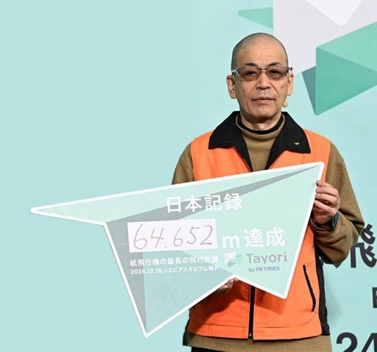 藤原室長代理は折り紙ヒコーキの製作などの監修を担当し、2024年12月16日、「梅ちゃんバズーカー」で知られる梅野選手の投擲でギネス世界記録の88.318mに挑戦。結果は惜しくも世界記録には届きませんでしたが、