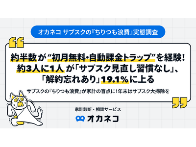 オカネコ サブスクの『ちりつも浪費』実態調査」または「家計診断・相談サービス『オカネコ』調べ」と記載してください。