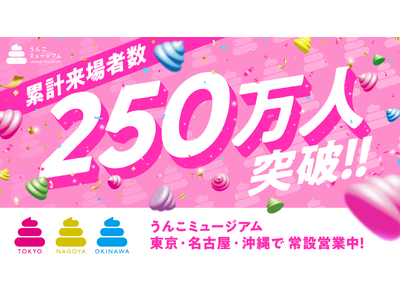 「うんこミュージアム」を共同で展開する株式会社たのしいミュージアム(本社:東京都渋谷区、代表取締役:小林将)は、「うんこミュージアム」の来場者数が累計250万人を突破したことをお知らせします。