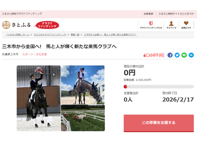 さとふるクラウドファンディング」にて、「三木市から全国へ! 馬と人が輝く新たな乗馬クラブへ」の寄付受け付けを2025年12月18日より開始します。