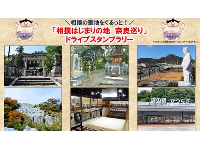 「相撲はじまりの地 奈良巡り」ドライブスタンプラリーを開催。スタンプを集めて応募すると自治体おすすめの特産品が抽選であたります。