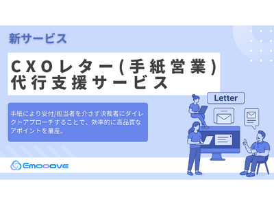 新時代の営業手法を提案する株式会社Emooove(本社:東京都渋谷区、代表取締役CEO:藤澤諒一)は、BtoB営業における決裁者アプローチの課題を解決する『CxOレター(手紙営業)代行支援サービス』を正式リリースしたことをお知らせいたします。