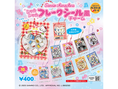 ベネリック株式会社(本社:東京都千代田区、代表取締役社長:横山 武)は、株式会社サンリオのキャラクターたちをデザインしたカプセルトイの新商品「サンリオキャラクターズ シャカシャカフレークシール風チャーム」(全10種/1回400円・税込)を2025年12月中旬より順次、全国のカプセルトイ自販機コーナーにて発売いたします。