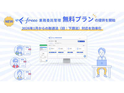 フリー株式会社(本社:東京都品川区、CEO:佐々木大輔、以下「freee」)は、業務委託先との契約・発注・請求・支払を一元管理するクラウドサービス「freee業務委託管理」において、従来の下請法が改正され2026年1月から施行される中小受託取引適正化法(以下「取適法」)対応を見据えて新たに無料プランの提供を開始しました。