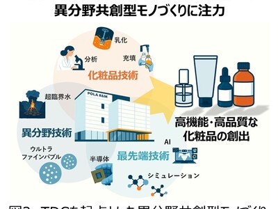 ポーラ化成工業では、これまでにない高機能・高品質な化粧品の創出を目指し、研究・開発・生産が一体となった技術開発体制を実現するTDC(図2)を起点に、異分野共創型モノづくりに注力しています(補足資料3)。