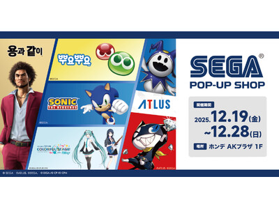 株式会社セガは、2025年12月19日(金)から12月28日(日)の期間限定で、「SEGA POP-UP SHOP in AK PLAZA HONGDAE」を韓国 ソウル特別市のAK PLAZA HONGDAE にオープンすることをお知らせします。