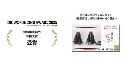 株式会社パルコ(本部:東京都渋谷区)にて運営していた購入型クラウドファンディングサービス「BOOSTER」にて実施した【土方歳三つなぐプロジェクト ~遺品修復と複製で未来へ紡ぐ歴史️~】が、CAMPFIREクラウドファンディングアワード2025において、【年間大賞・地域拠点部門】を受賞いたしました。