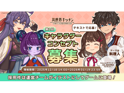 スマートフォンゲーム『異世界キッチン 行列のできる現代料理のお店』は、「第1回キャラクターコンセプト募集」を公式Xアカウントにてキャラクターデザインの募集を行う事を発表いたします。