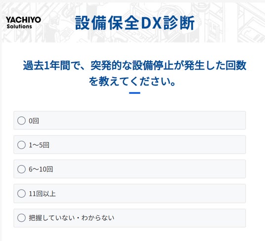 八千代ソリューションズ株式会社(本店:東京都台東区、代表取締役社長:水野 高志、以下「八千代ソリューションズ」)は、無料オンライン「設備保全DX診断」の提供を開始します。