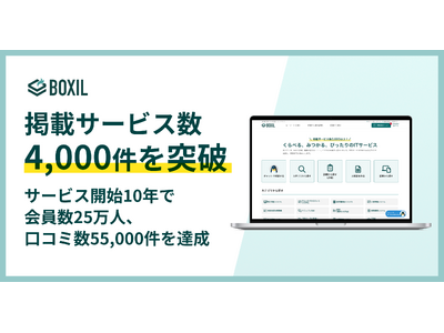 SaaS(※1)比較サイト「BOXIL(ボクシル)」を運営するスマートキャンプ株式会社(本社:東京都港区、代表取締役社長CEO:林 詩音、以下「スマートキャンプ」)は、2025年11月に掲載サービス数が4,000件を達成したことをお知らせします。また、「BOXIL」は2025年9月にサービスの提供開始から10周年を迎えました。