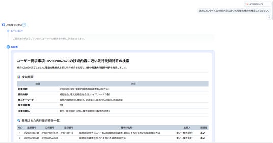 ■ 「これと似た技術を探して」だけで調査レポートまで完成!AIの処理プロセスや思考過程も公開