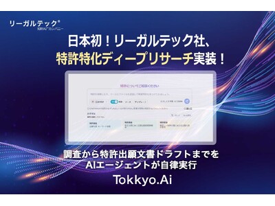 2025年12月18日(木)、リーガルテック株式会社(本社:東京都港区、代表取締役CEO:平井智之)は、AI知財プラットフォーム MyTokkyoAi において、近年注目を集める 「Deep Research」 を知財実務向けに再定義した新機能として、AIの思考・調査プロセスを可視化しながら、検索・分析・提案書作成までを一気通貫で自律実行する「ディープエージェント方式」知財リサーチ機能を実装することをお知らせします。既存ユーザーは12月24日の朝よりこれまでと変わらないプランで利用できる。