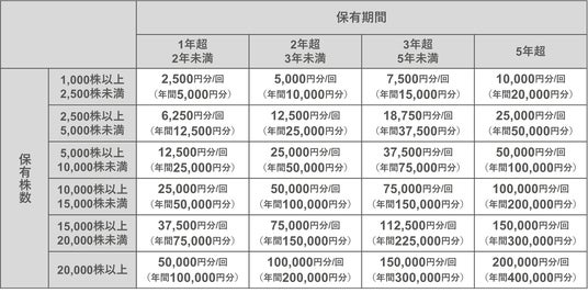 ■進呈額:対象株主様の保有株数、継続保有期間に応じて決定