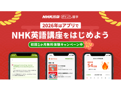 NHK英語講座は、ノーベル賞受賞者である山中伸弥教授、2024年本屋大賞を受賞した宮島未奈氏など、各業界のトップランナーの方々にご愛用いただいてきました。そんなNHK英語講座アプリ「ポケット語学」では、2025年12月18日(木)から【通常7日間の初回無料体験期間を、特別に1か月間に延長するキャンペーン】を実施。申し込み期限は2026年1月12日(月・祝)23:59まで。