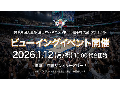 琉球ゴールデンキングスは、1月6日(火)より集中開催で実施される「第101回天皇杯 全日本バスケットボール選手権大会 ファイナルラウンド」への進出が決定しております。1月12日(月/祝)に開催されるファイナルにキングスが進出した場合には、メガビジョンにて『試合映像をライブ上映』する「ビューイングイベントin沖縄サントリーアリーナ」を開催いたします。