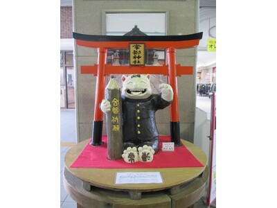 「合格招き猫」を、名鉄常滑駅改札前にて展示します。また、とこなめ観光案内所(陶磁器会館)では、様々な合格祈願グッズも販売します。