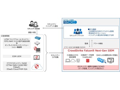 伊藤忠テクノソリューションズ株式会社(代表取締役社長:新宮 達史、本社:東京都港区、略称:CTC)は、クラウドストライクとのパートナーシップを拡大し、お客様システムを24時間365日リアルタイムで監視するセキュリティ監視・運用支援サービス「CTC-SOC※1」に、CrowdStrike Falcon(R) Next-Gen SIEMを連携した新サービスの提供を開始しました。専任のセキュリティアナリストによる24時間365日の監視とAIによる自動化で運用効率の向上を実現します。これにより、お客様の運用負担を軽減し、高度なセキュリティ監視・運用を提供します。