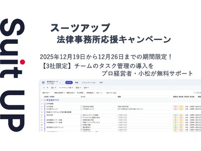 株式会社スーツ(所在地:東京都千代田区、代表取締役社長CEO:小松 裕介)は、チームのタスク管理・プロジェクト管理ツール「スーツアップ」において、法律事務所応援キャンペーンを実施いたします。