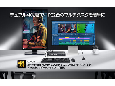2台のPCを、1つの操作環境に。4K60pデュアルディスプレイ対応のHDMI KVMP(TM)スイッチ「CS742H」