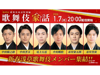 歌舞伎俳優がさまざまなゲストを迎えてトークを展開するオンライントークショー『歌舞伎家話(かぶきやわ)』。これまで歌舞伎俳優を中心に様々な芸能やエンターテインメントにまつわるトークを繰り広げて参りました。2026年 最初の歌舞伎家話は「新春浅草歌舞伎」出演メンバーが勢ぞろいでお届けいたします!
