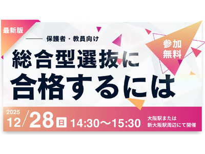 総合型選抜(AO入試)の専門塾である Loohcs志塾(ルークス志塾) は、西日本旅客鉄道株式会社(JR西日本)、探究活動支援団体 異端児(ITANZI) と連携し、2025年12月28日(日)に 「総合型選抜(AO入試)に合格するには?」保護者・教員向け相談会 を開催いたします。