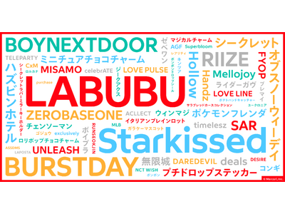 韓国アイドルグループの関連ワードは、「BURSTDAY」「BOYNEXTDOOR」「RIIZE」「ZEROBASEONE」「Hollow」など、上位10ワードのうち60%を占め、韓国エンターテインメントの圧倒的な熱量が感じられる結果となりました。 2023年のトレンドワードマップ(※1)でも”推し活”関連が席巻しましたが、その潮流は変わらず、2025年もK-POP市場の活況が浮き彫りとなりました。