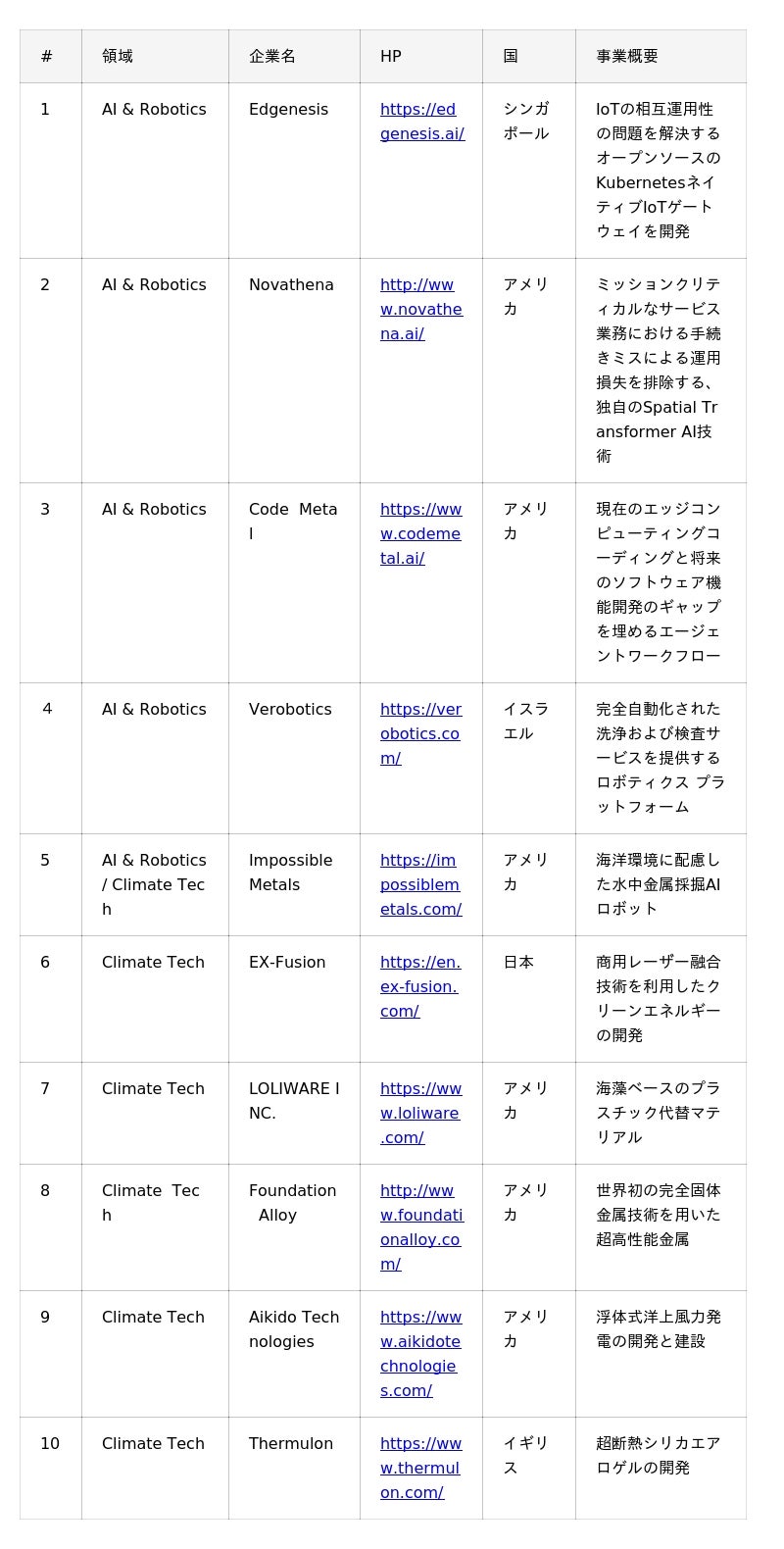 (サステナビリティテック及び AI・ロボティクス、その他のテクノロジーも含む)