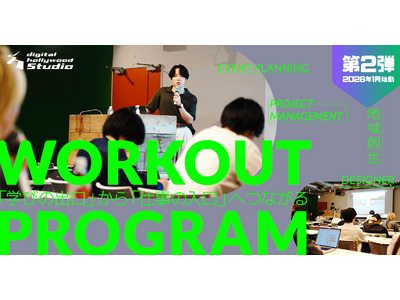IT関連及びデジタルコンテンツの人材育成スクール[デジタルハリウッド] (運営会社:デジタルハリウッド株式会社、本社/本校:東京都千代田区、代表取締役社長兼CEO:春名啓紀、学長:杉山知之)では、運営をする、新しい学びのスタイルを通して多様なライフスタイルを支援し全国へ展開している、Webと動画について学べるラーニングスタジオ『デジタルハリウッドSTUDIO』のSTUDIO渋谷では、第一線で活躍する企業やクリエイターと受講生が出会い、学び、共創できる「ワークアウトプログラム」を展開しています。