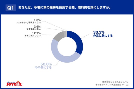 当社が2025年11月に実施した「冬の車のエアコン実態調査」では、冬場に中古車のエアコンが故障した経験のある車所有者102名のうち、83.3%が暖房利用時に燃料費を「気にする」と回答しました