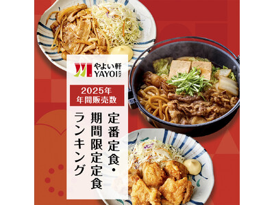 株式会社プレナスは、定食レストラン「やよい軒」を、日本国内にて2025年11月末現在363店舗展開しております。このたび日本国内「やよい軒」の2025年年間販売数ランキングを発表いたします。本リリースでは、販売数が多かった“定番定食トップ5”と“期間限定定食トップ5”の2つの部門に分けて紹介いたします。(集計期間:2025年1月1日~2025年12月7日)