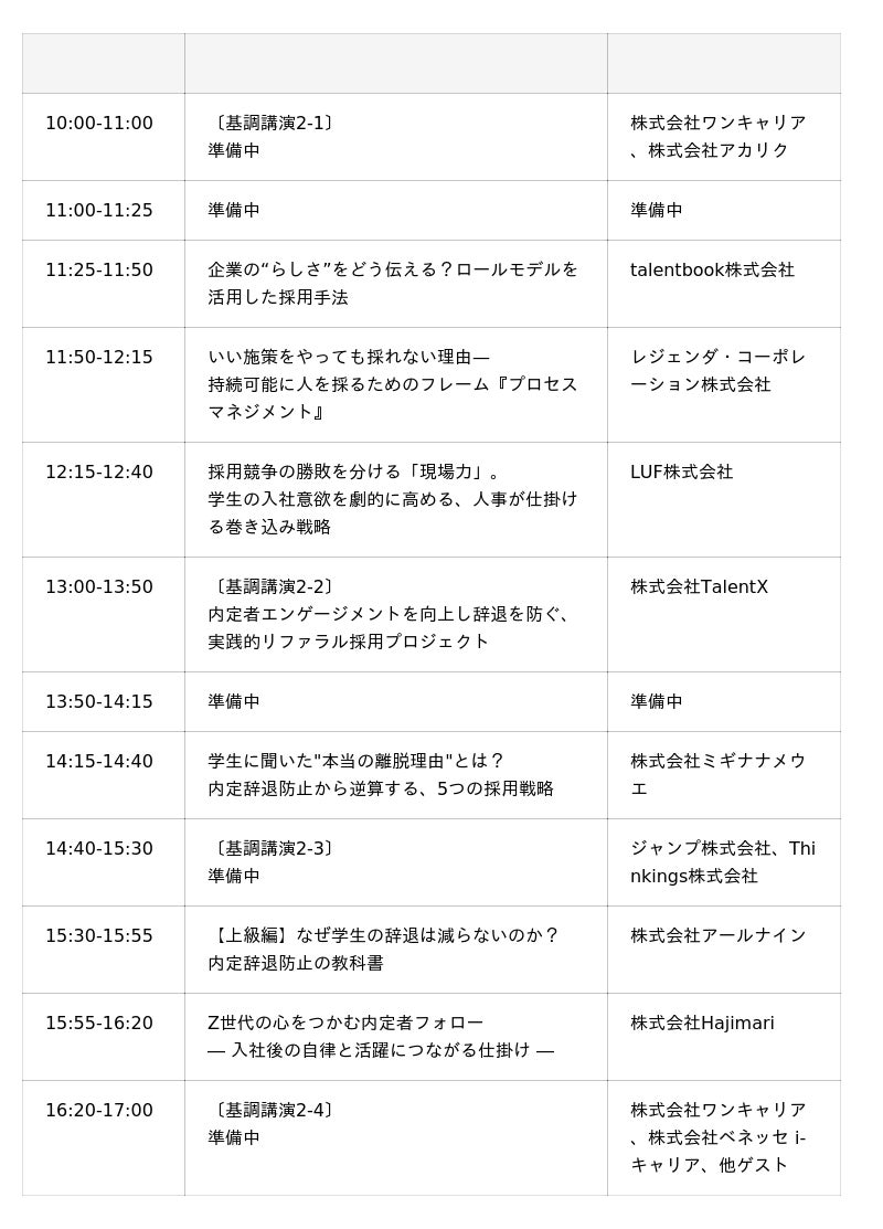 ※登壇企業およびテーマ、タイムラインなどは変更になる可能性がございます。