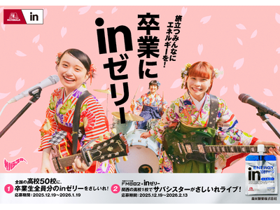 森永製菓株式会社(東京都港区芝浦、代表取締役社長 COO・森 信也)は、2026年3月に卒業を迎える学生を応援するため、「卒業にinゼリー」として2つの特別企画を実施致します。全国50校に、卒業生全員分の「inゼリー」を贈る「inゼリーさしいれキャンペーン」と、関西地区限定の「サバシスターライブさしいれキャンペーン」について2025年12月19日より募集を開始いたします。